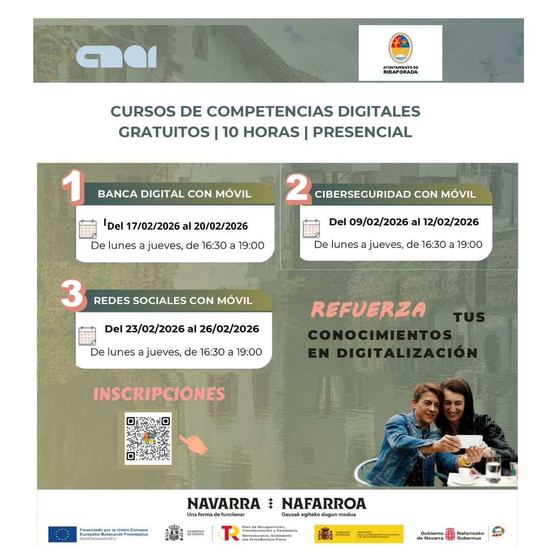 Próximos cursos de competencias digitales en Ribaforada para el mes de febrero: