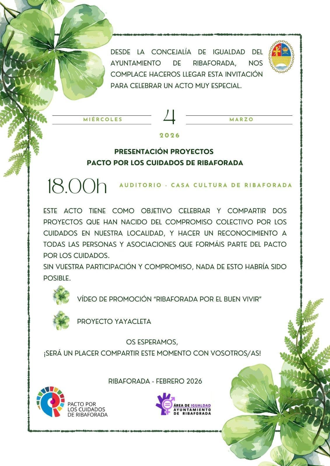 En este acto celebraremos y presentaremos dos proyectos que han nacido del compromiso colectivo por los cuidados en nuestra localidad:
