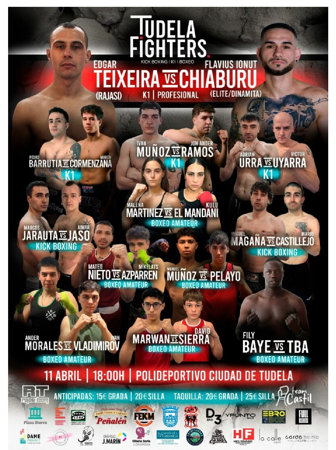 Reúne combates de kick boxing, K1 y boxeo con deportistas de diferentes clubes y categorías. Lugar: Polideportivo Ciudad de Tudela Organiza: Team Castil y Team Rajasi. Colabora: Ayuntamiento de Tudela.