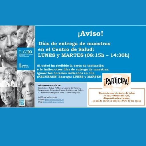 Entregas en el Centro de Salud: lunes y martes, de 08:15 a 14:30 horas.